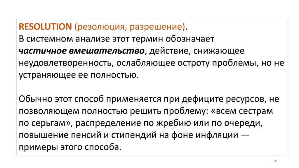RESOLUTION (резолюция, разрешение).В системном анализе этот термин обозначает