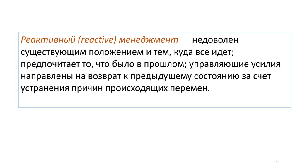 Реактивный (reactive) менеджмент — недоволенсуществующим положением и тем, куда все идет;