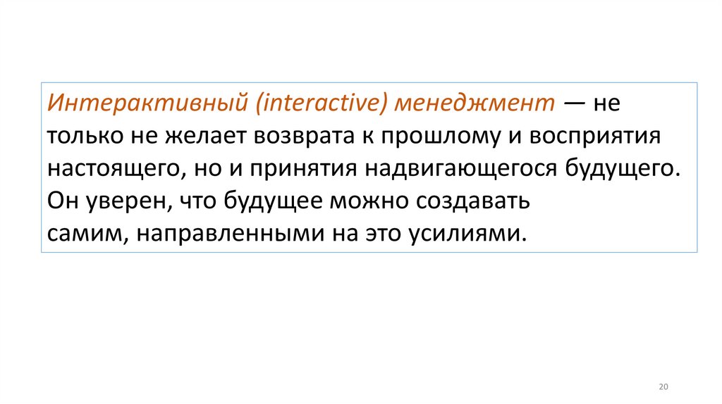 Интерактивный (interactive) менеджмент — нетолько не желает возврата к прошлому и восприятия