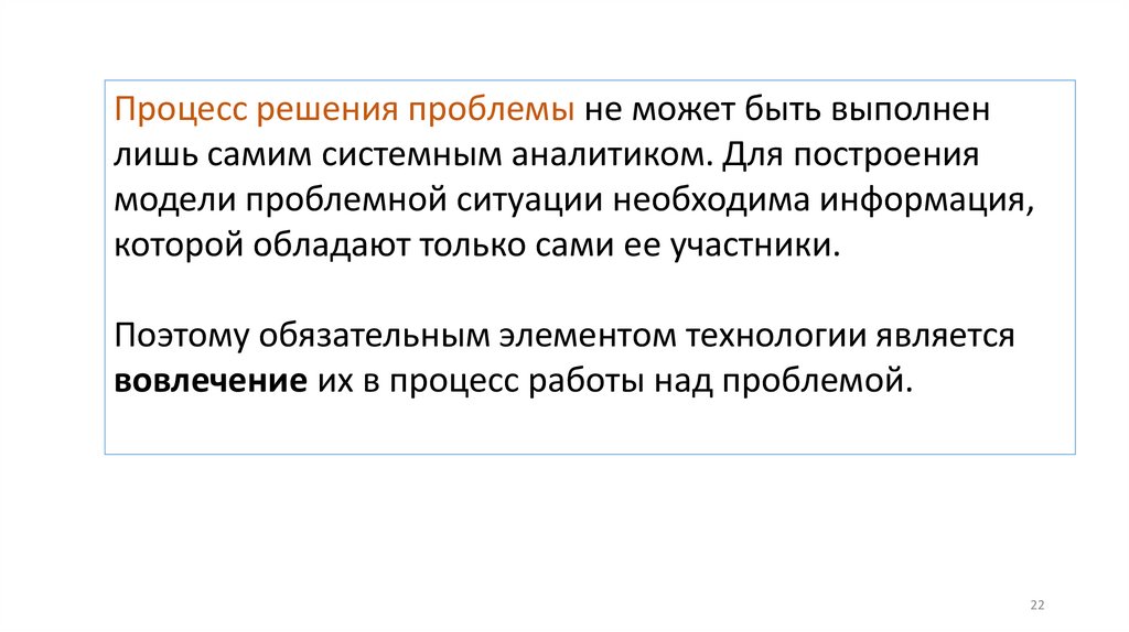 Процесс решения проблемы не может быть выполненлишь самим системным аналитиком. Для построения