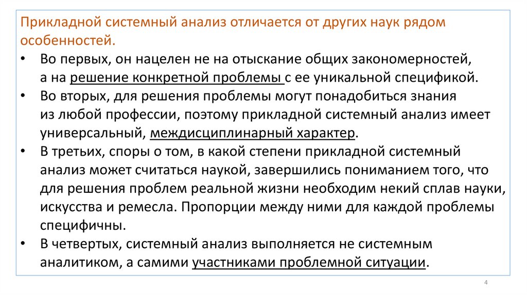 Прикладной системный анализ отличается от других наук рядомособенностей.