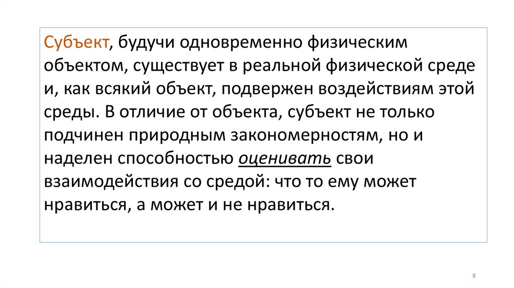 Субъект, будучи одновременно физическимобъектом, существует в реальной физической среде