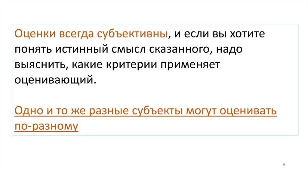 Оценки всегда субъективны, и если вы хотитепонять истинный смысл сказанного, надо