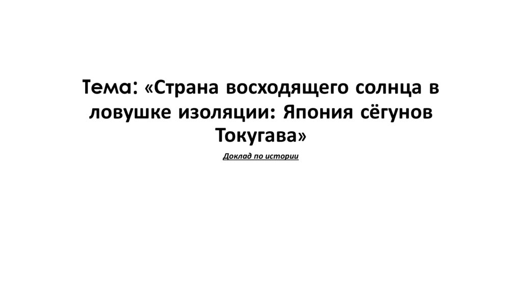 1. Тема: «Страна восходящего солнца в ловушке изоляции: Япония сёгунов Токугава»