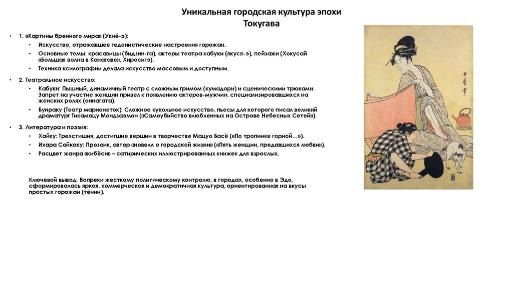 Рост городов-замков и портов (Осака – «кухня нации», центр торговли рисом).