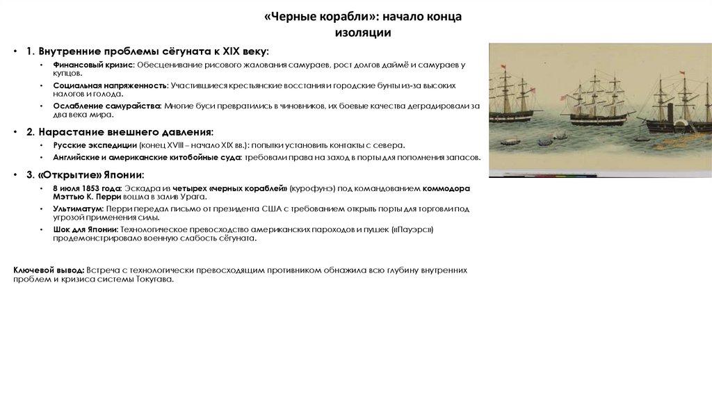 • 1. Внутренние проблемы сёгуната к XIX веку: