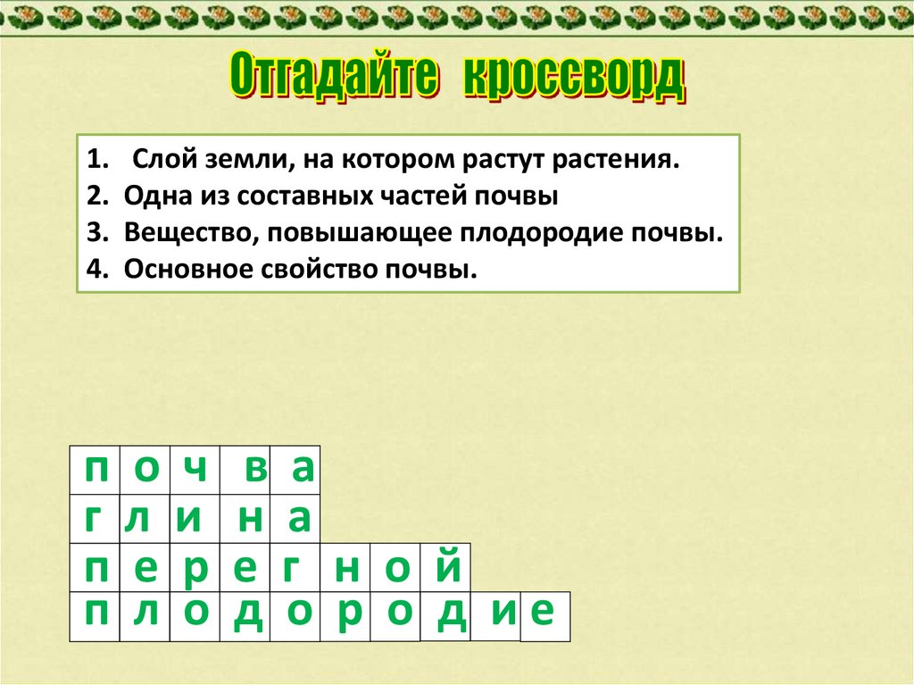 1. Слой земли, на котором растут растения.2. Одна из составных частей почвы