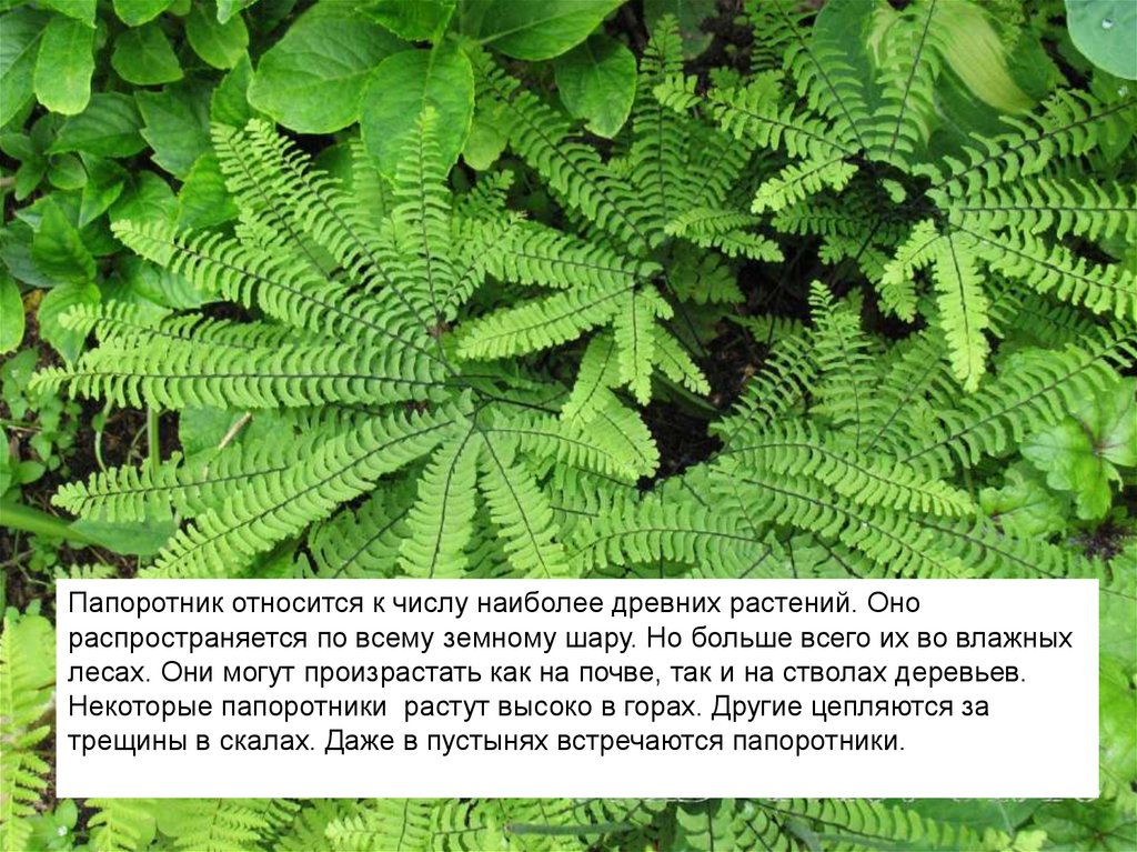 Папоротник относится к числу наиболее древних растений. Онораспространяется по всему земному шару. Но больше всего их во влажных