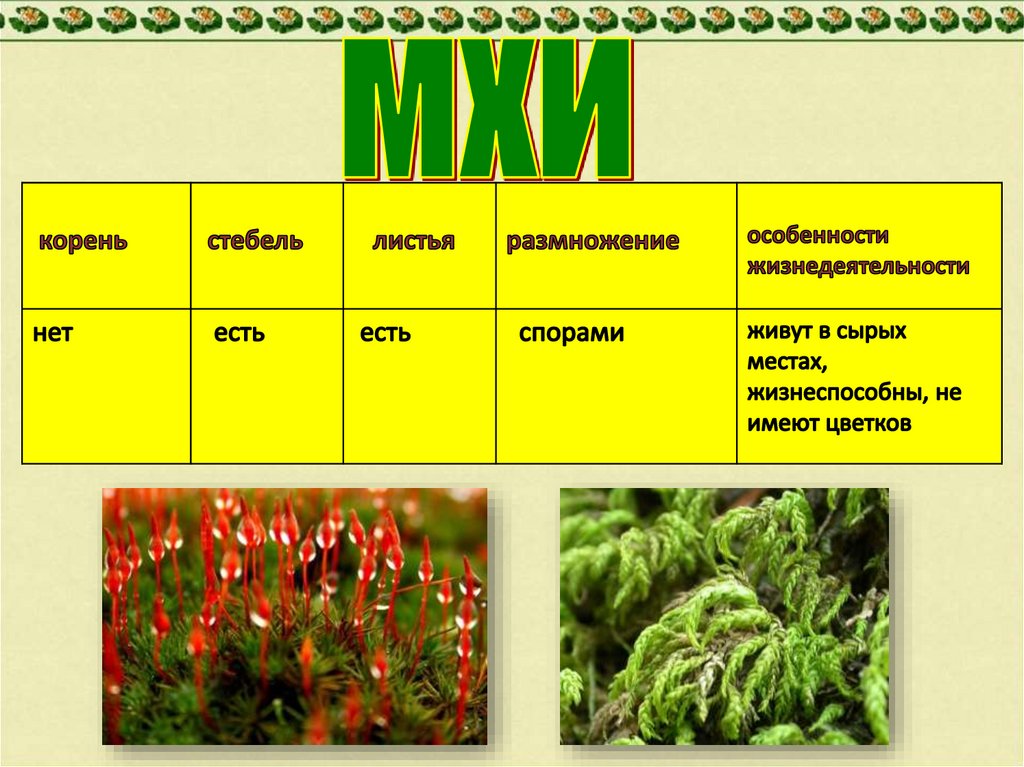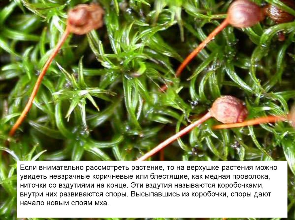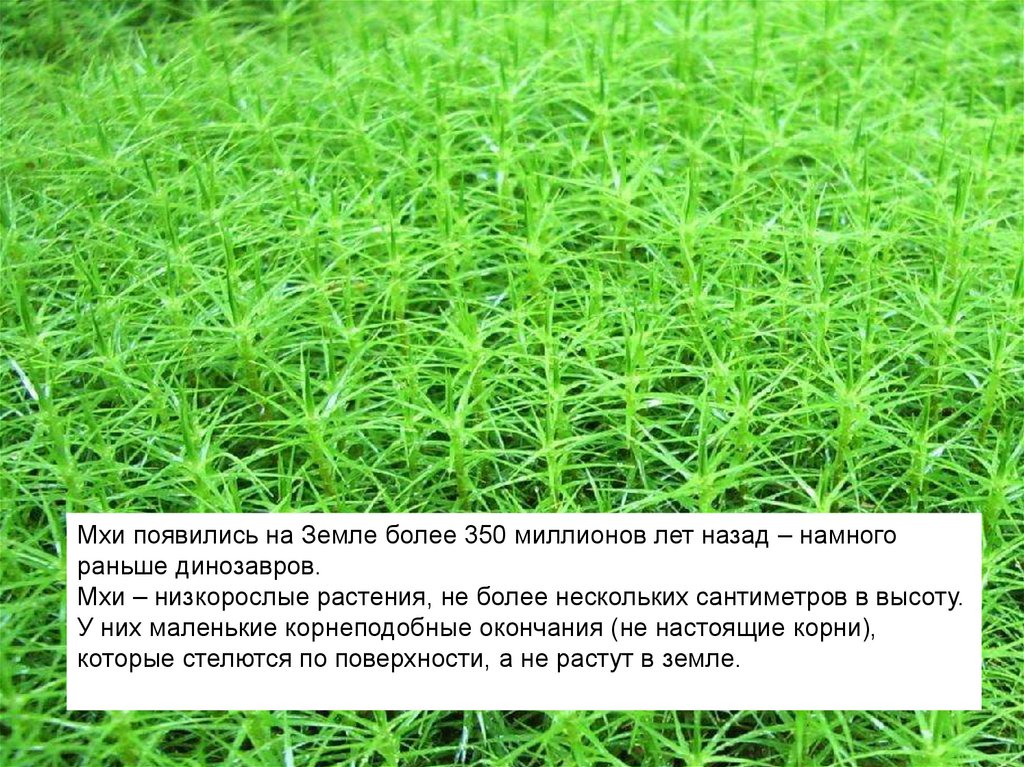 Мхи – низкорослые растения, не более нескольких сантиметров в высоту.