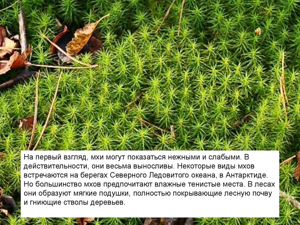 На первый взгляд, мхи могут показаться нежными и слабыми. Вдействительности, они весьма выносливы. Некоторые виды мхов