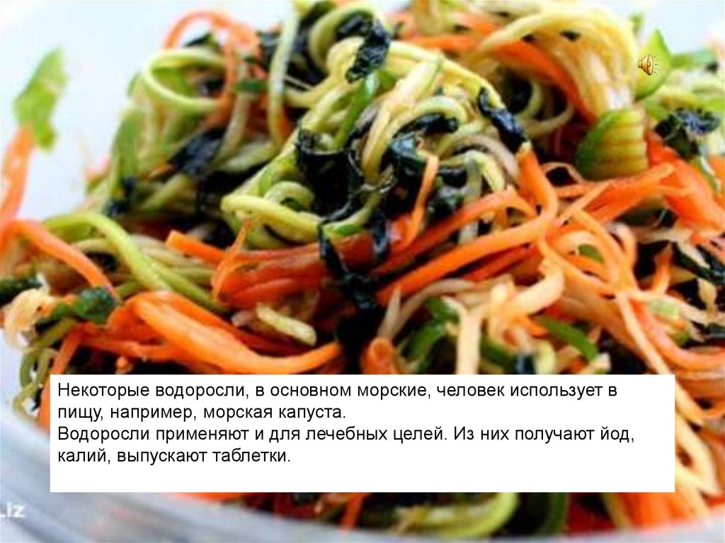 Некоторые водоросли, в основном морские, человек использует впищу, например, морская капуста.