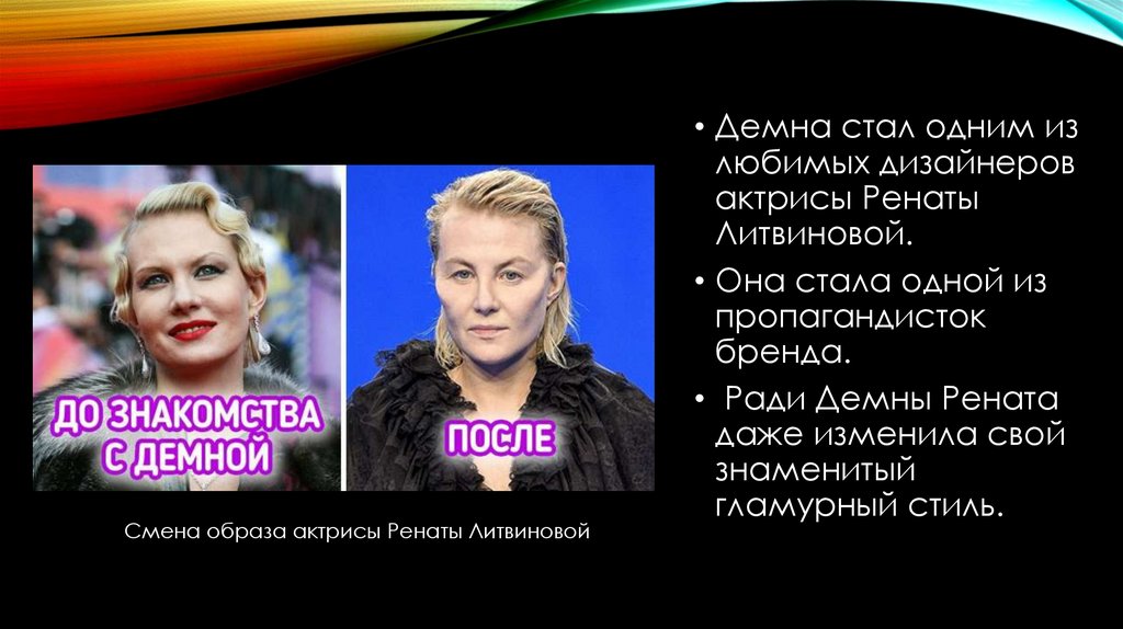 Смена образа актрисы Ренаты Литвиновой• Демна стал одним из