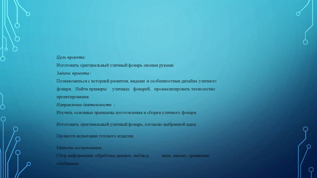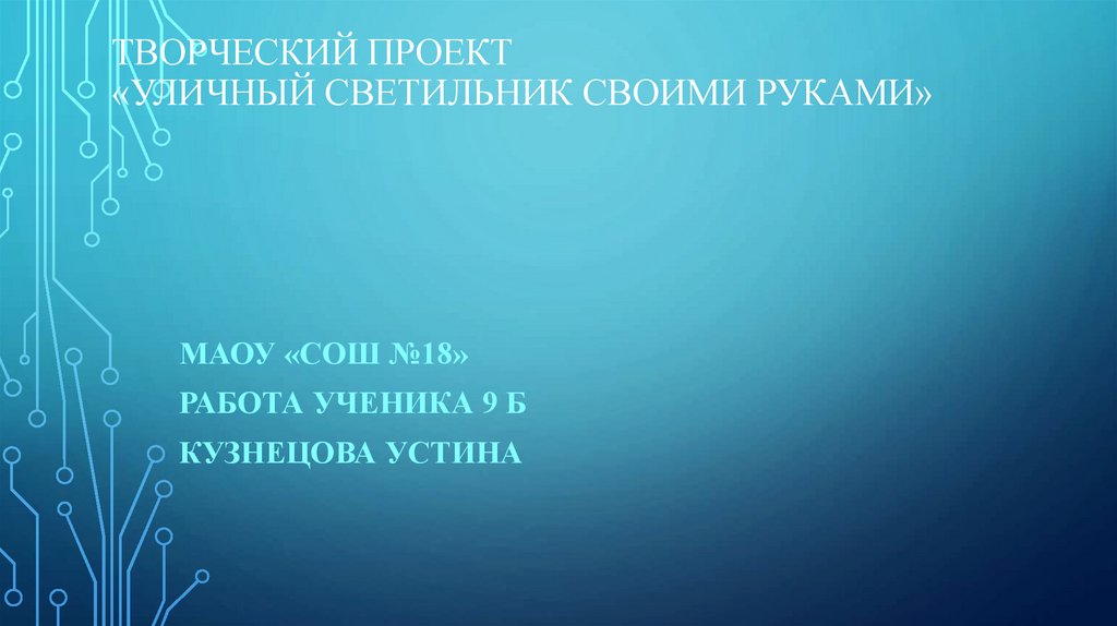 ТВОРЧЕСКИЙ ПРОЕКТ«УЛИЧНЫЙ СВЕТИЛЬНИК СВОИМИ РУКАМИ»