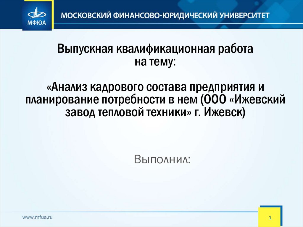 1. Выпускная квалификационная работа на тему: «Анализ кадрового состава предприятия и планирование потребности в нем (ООО