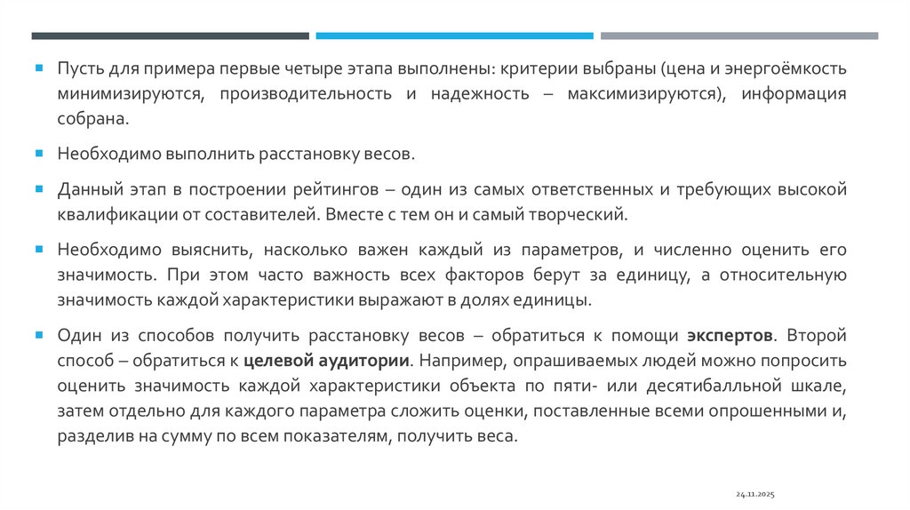 оценивания объекта, необходимо выяснить, насколько важен каждый из параметров, каков его удельный вес. Часто