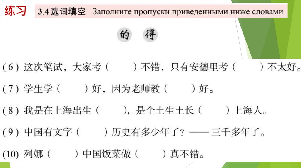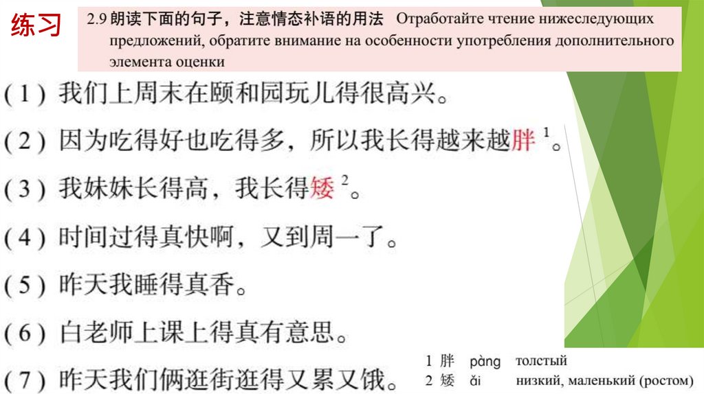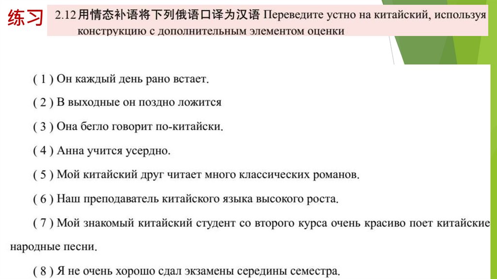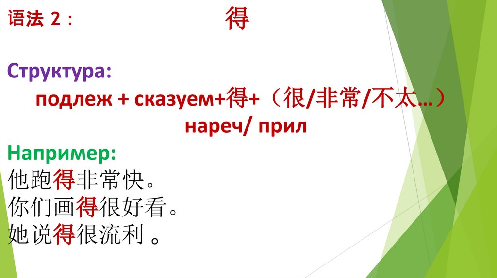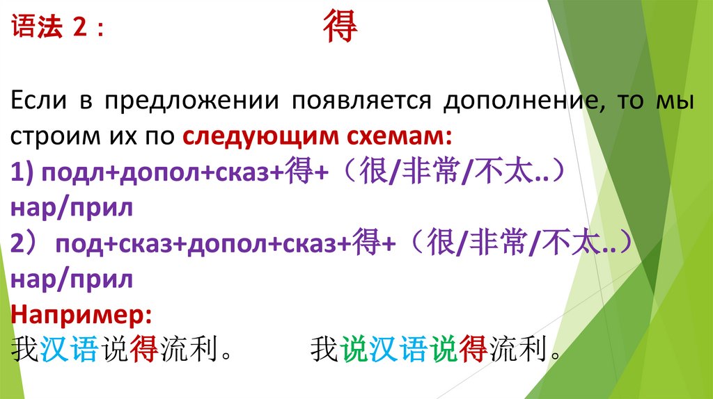2 под+сказ+допол+сказ+得+ 很/非常/不太..
