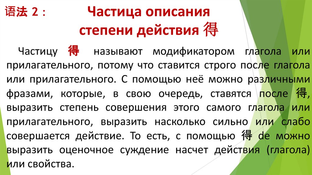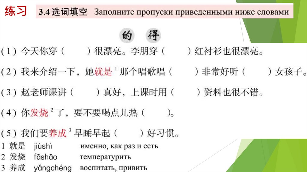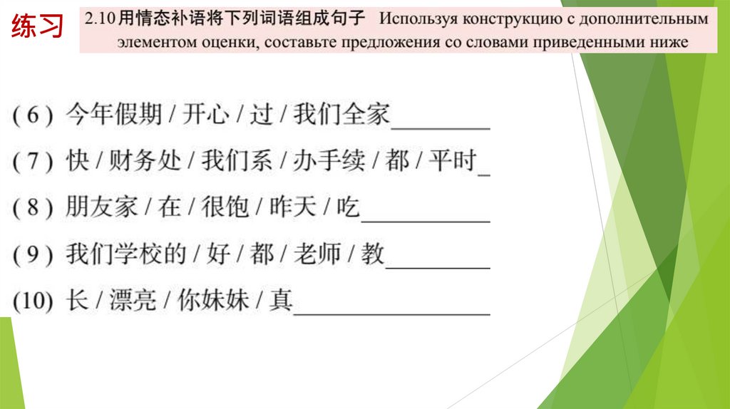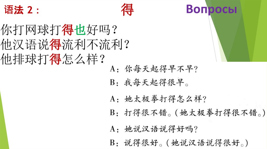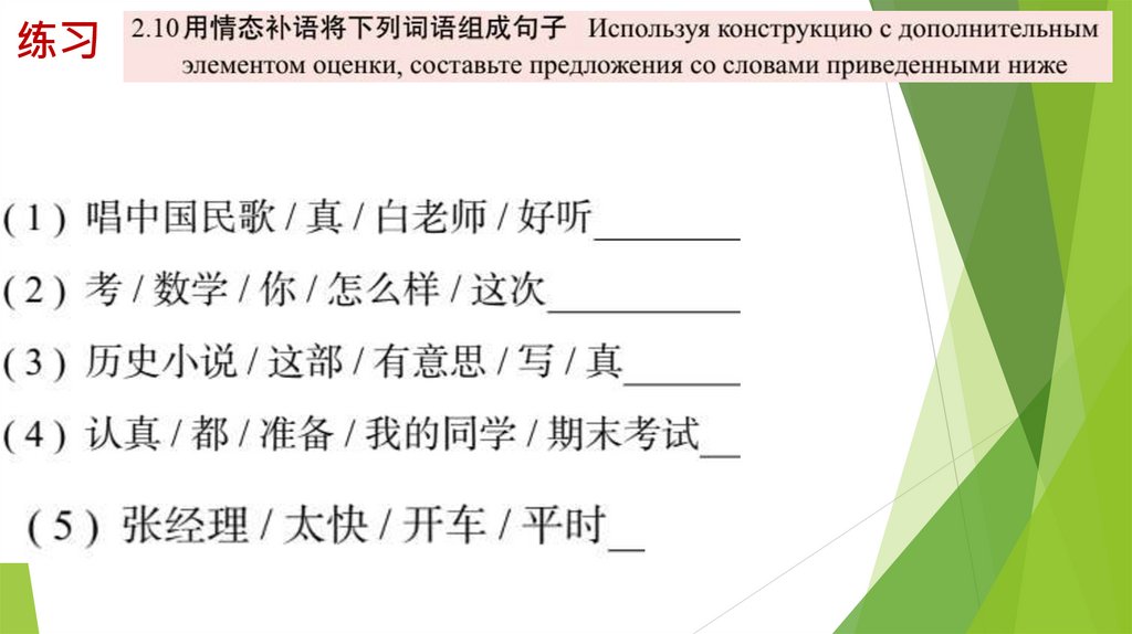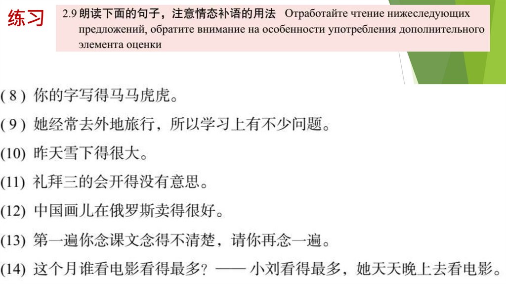 2 под+сказ+допол+сказ+得+ 很/非常/不太..