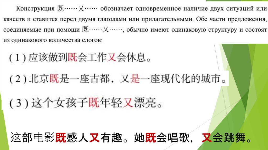 这部电影既感人又有趣。她既会唱歌 又会跳舞。9.