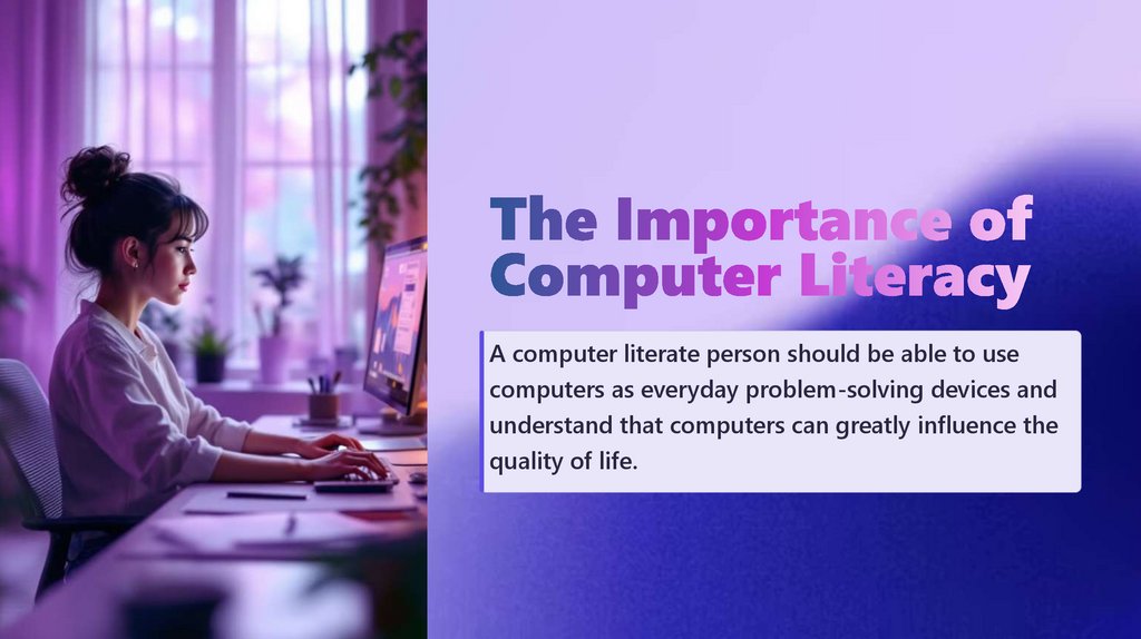 A computer literate person should be able to usecomputers as everyday problem-solving devices and