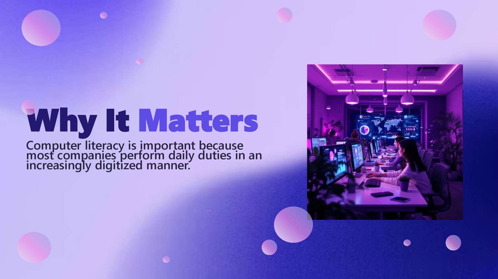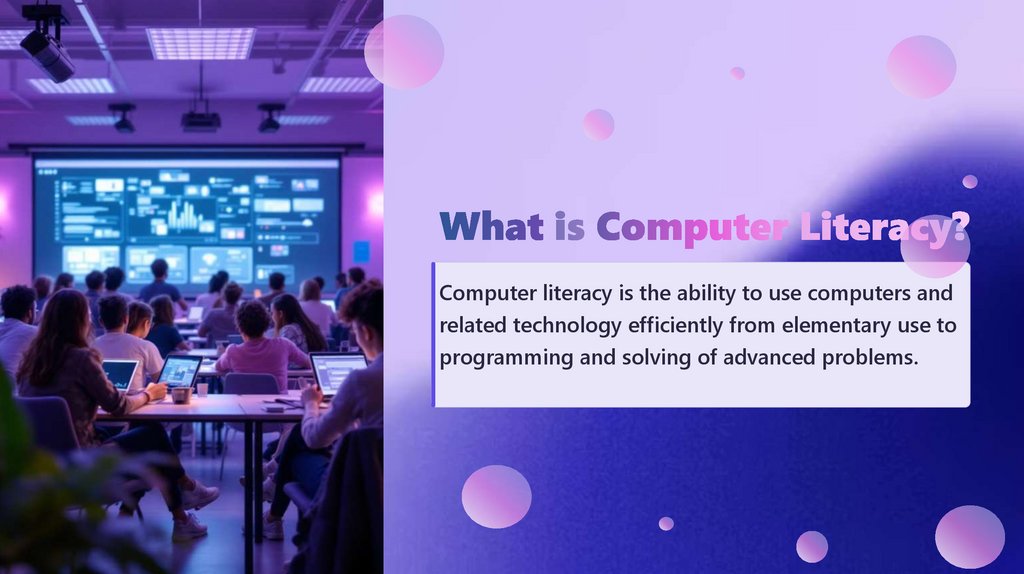 Computer literacy is the ability to use computers andrelated technology efficiently from elementary use to