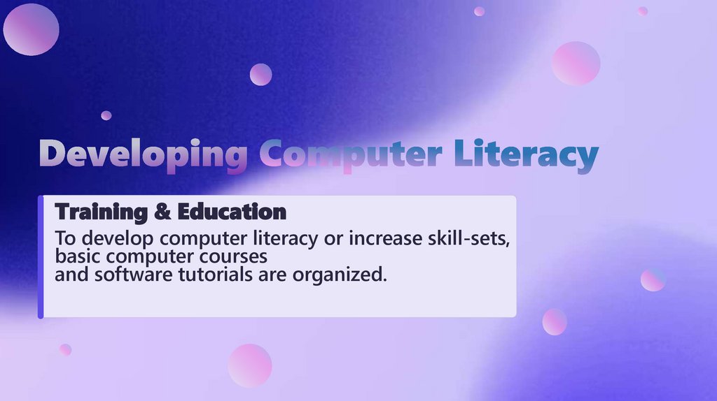 Training & EducationTo develop computer literacy or increase skill-sets,