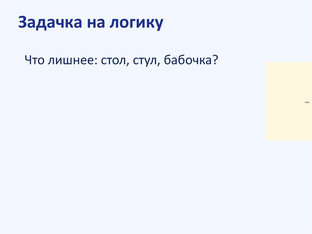 Задачка на логикуЧто лишнее: стол, стул, бабочка?