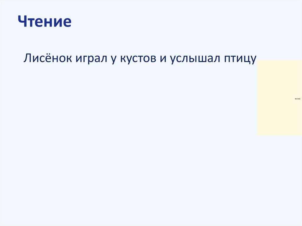 ЧтениеЛисёнок играл у кустов и услышал птицу.