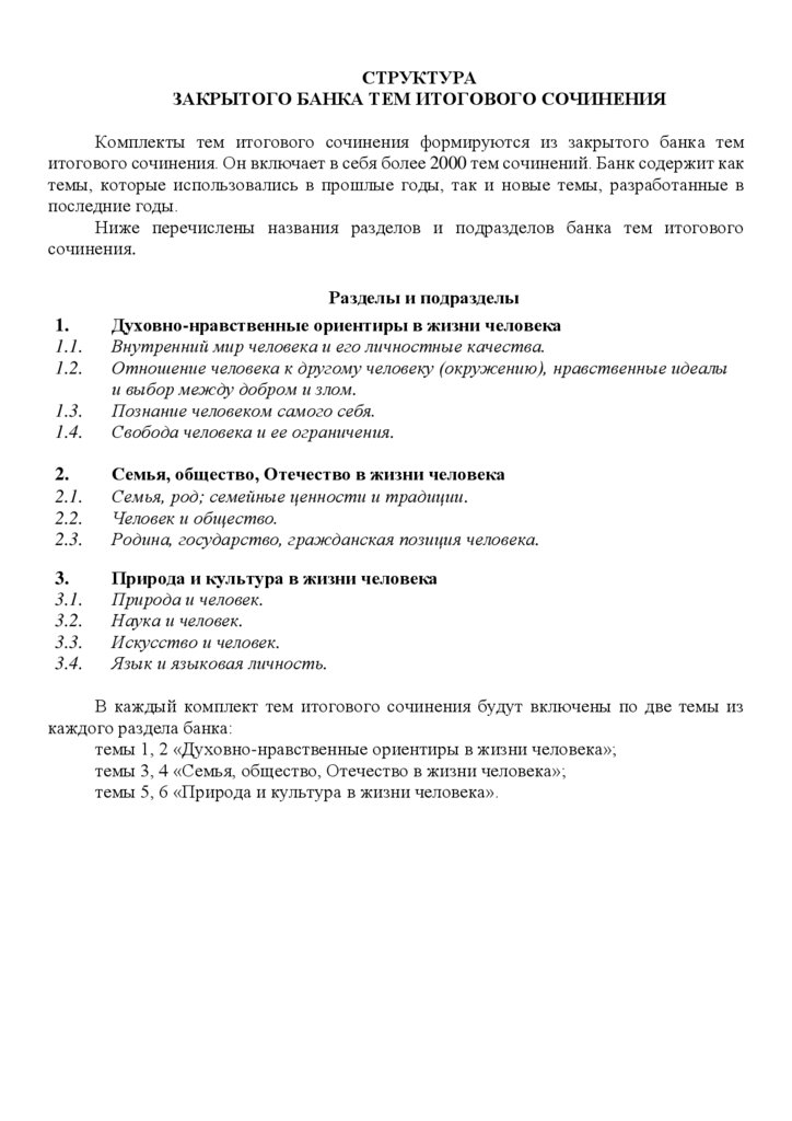СТРУКТУРАЗАКРЫТОГО БАНКА ТЕМ ИТОГОВОГО СОЧИНЕНИЯ