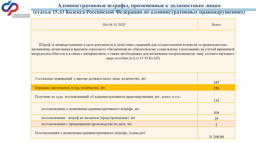 Административные штрафы, примененные к должностным лицам(статья 15.33 Кодекса Российской Федерации об административных правонарушениях)