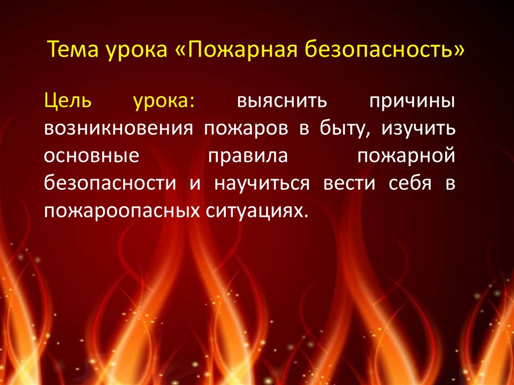 Тема урока «Пожарная безопасность»Цель
