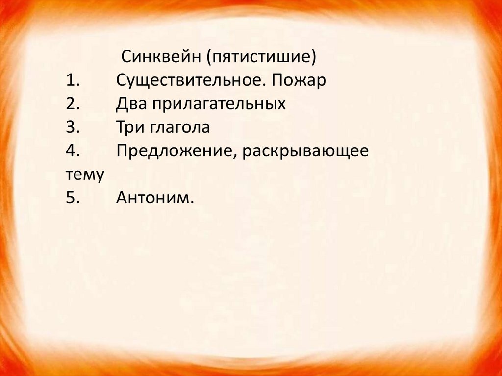 Синквейн (пятистишие)Существительное. Пожар