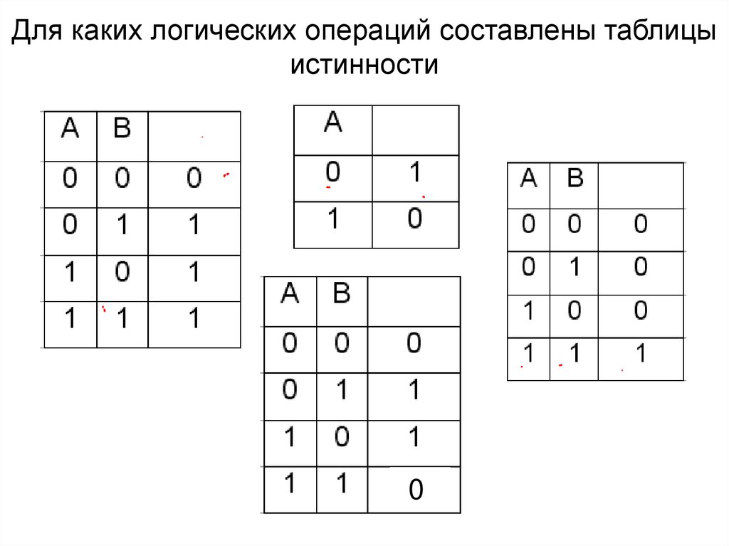 Для каких логических операций составлены таблицыистинности