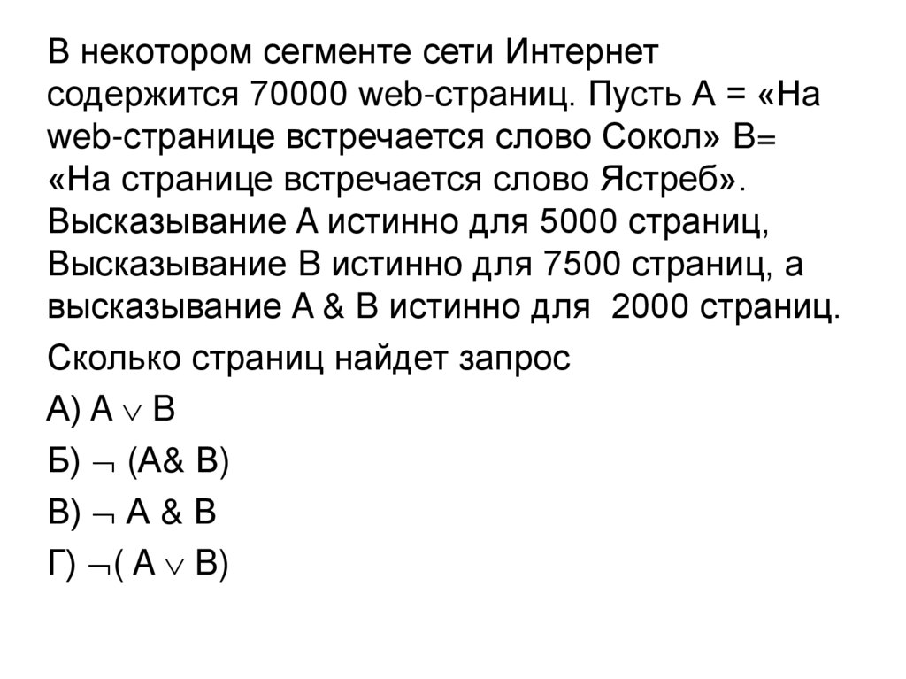 В некотором сегменте сети Интернетсодержится 70000 web-страниц. Пусть А = «На