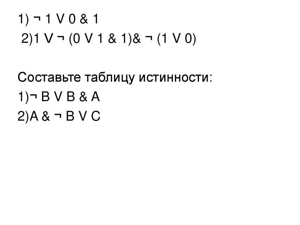 1) ¬ 1 V 0 & 12)1 V ¬ (0 V 1 & 1)& ¬ (1 V 0)