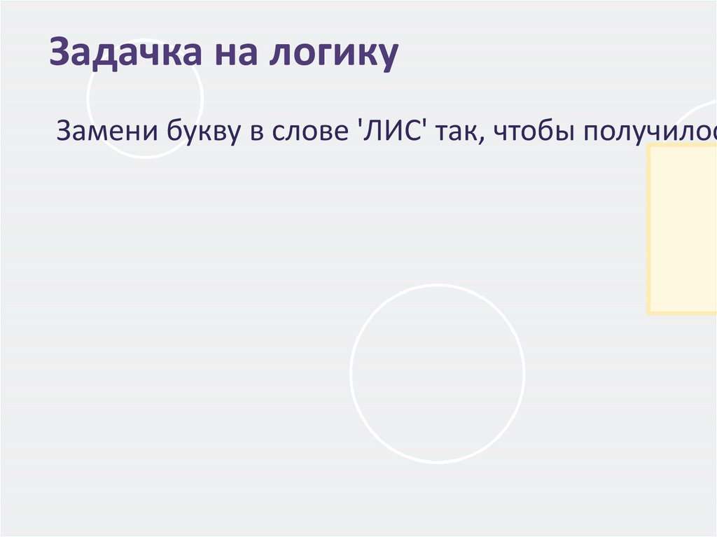 Задачка на логикуЗамени букву в слове 'ЛИС' так, чтобы получилос