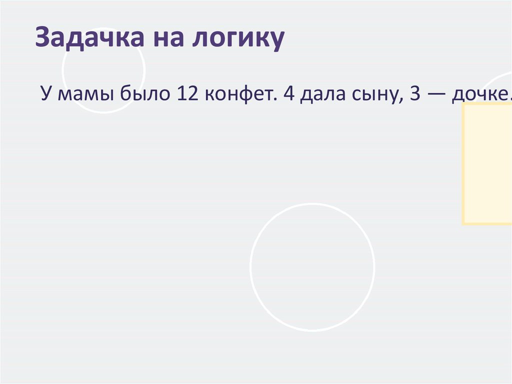 Задачка на логикуУ мамы было 12 конфет. 4 дала сыну, 3 — дочке.