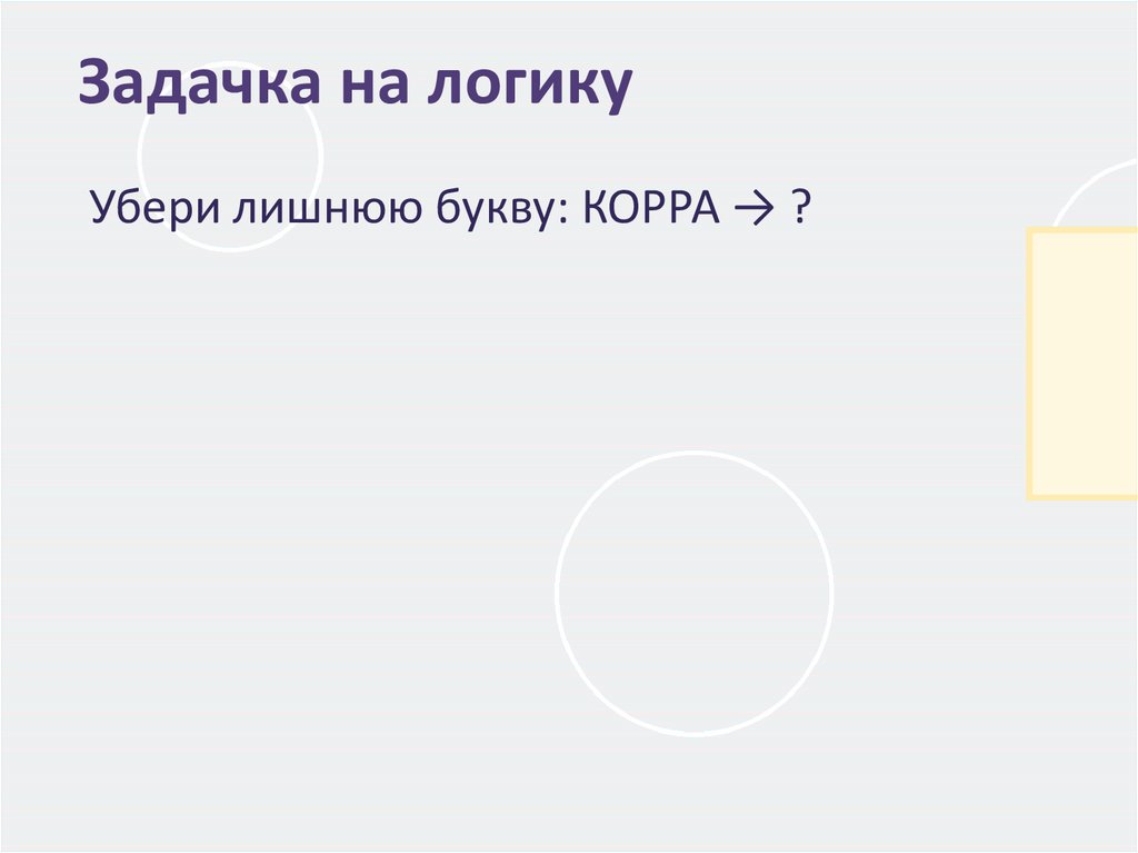 Задачка на логикуУбери лишнюю букву: КОРРА → ?