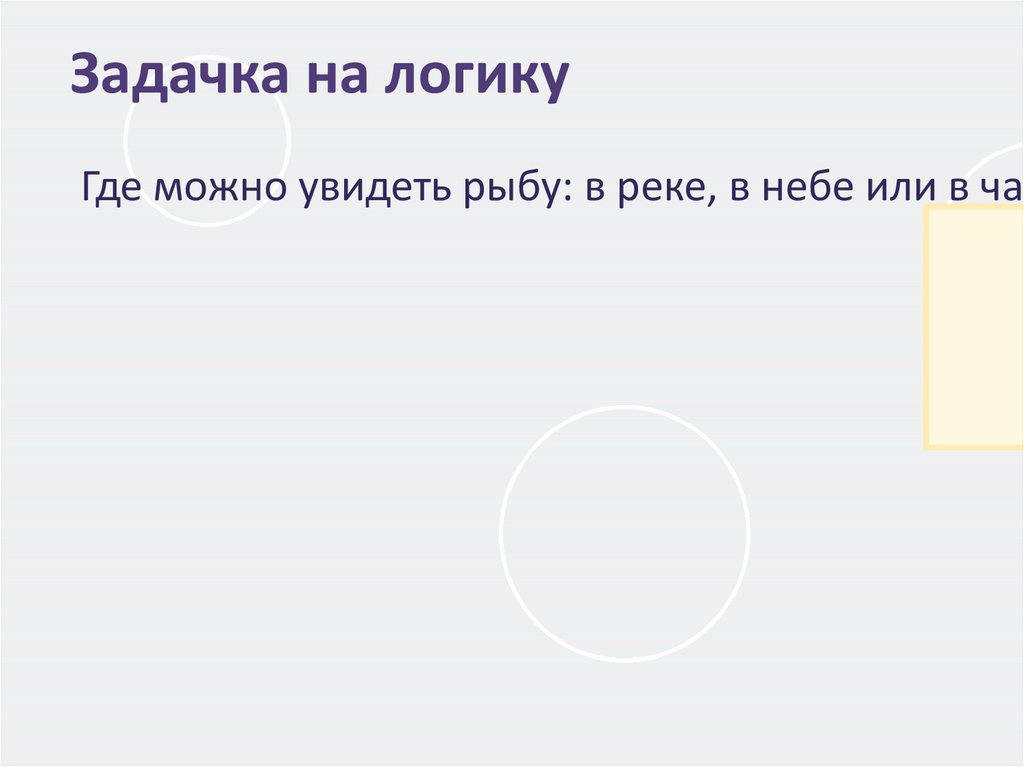 Задачка на логикуГде можно увидеть рыбу: в реке, в небе или в чаш