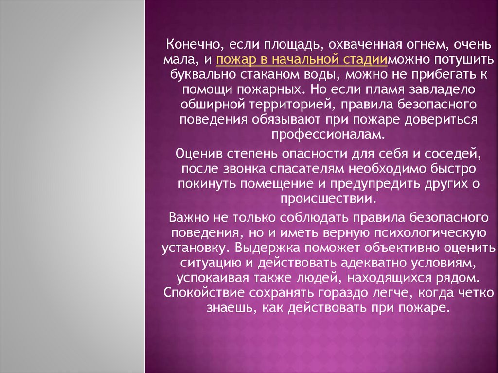 поведения обязывают при пожаре довериться