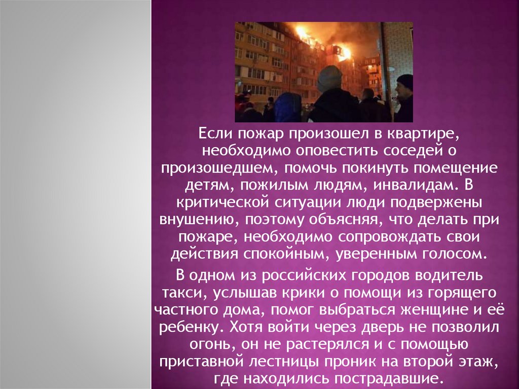 Если пожар произошел в квартире,необходимо оповестить соседей о