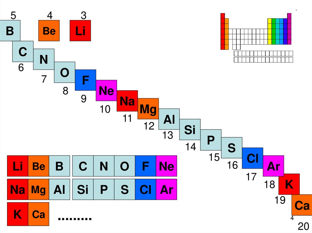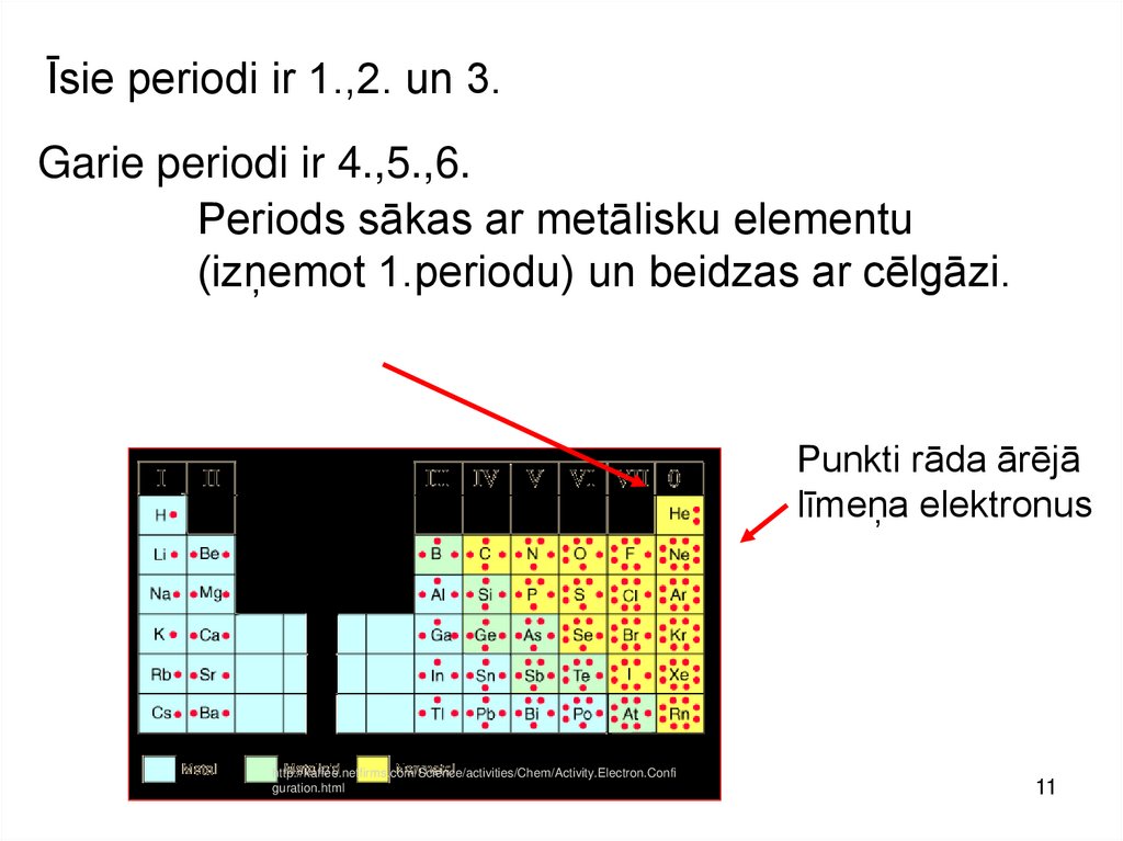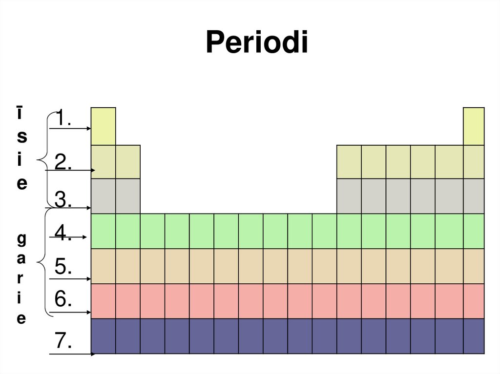 • 1.,2.,3. ir īsais periods(sastāv no 2 vai 8 elementiem)