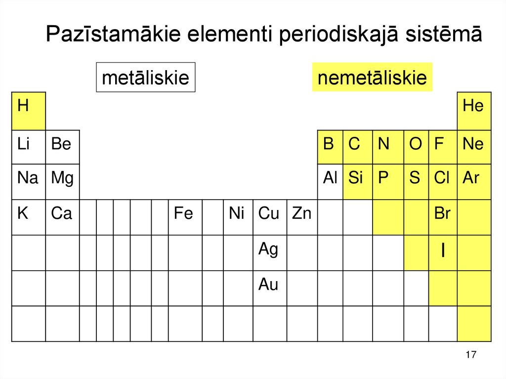 Pazīstamākie elementi periodiskajā sistēmāmetāliskie