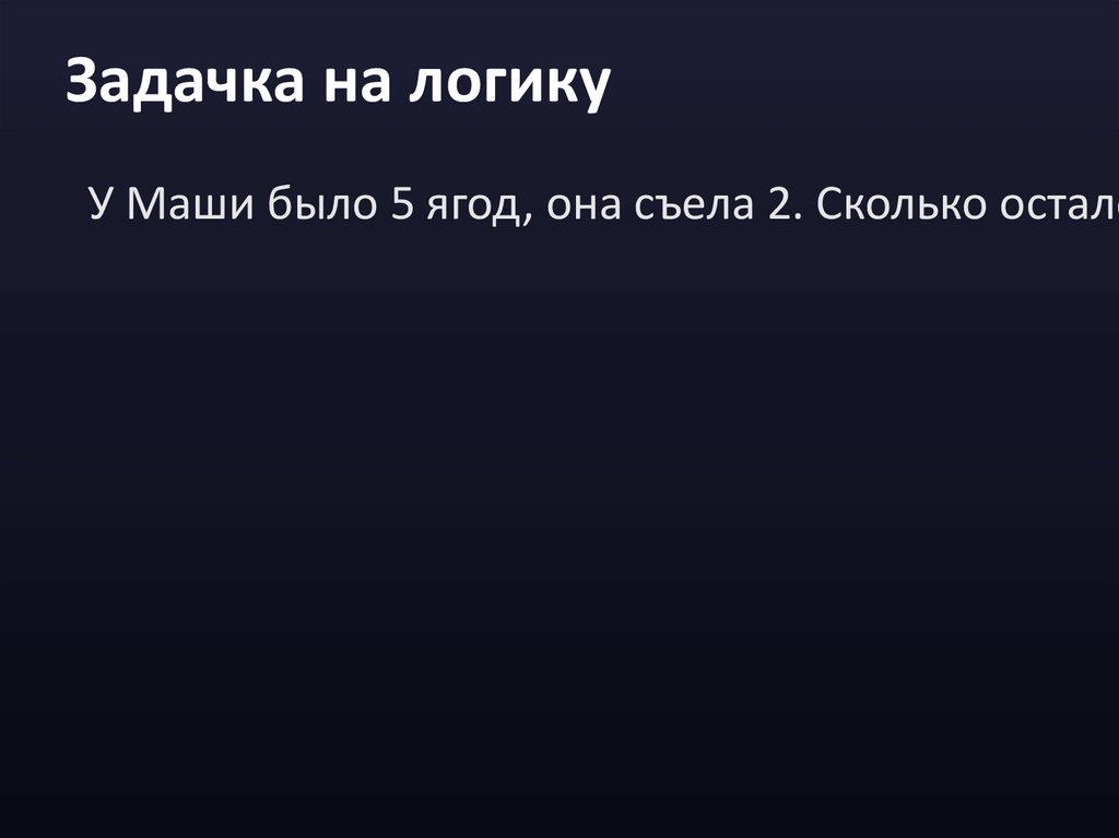 Задачка на логикуУ Маши было 5 ягод, она съела 2. Сколько остало