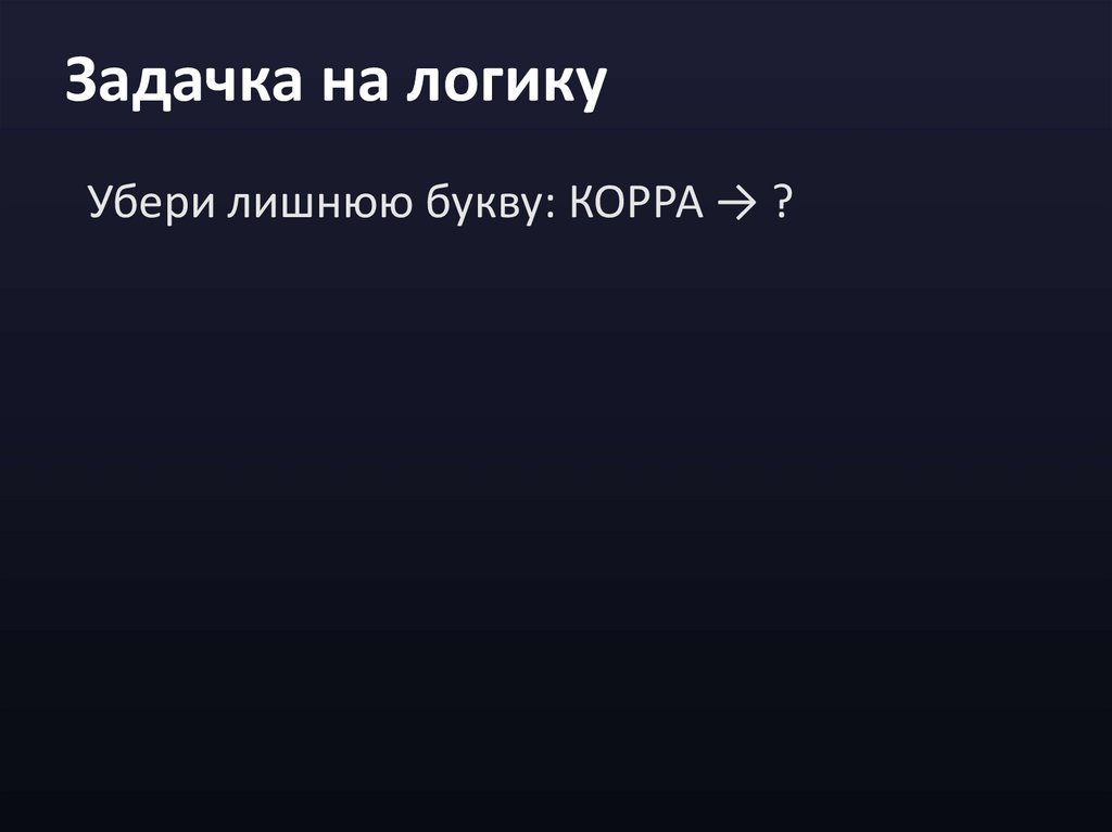 Задачка на логикуУбери лишнюю букву: КОРРА → ?