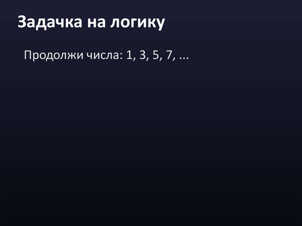 Задачка на логикуПродолжи числа: 1, 3, 5, 7, ...