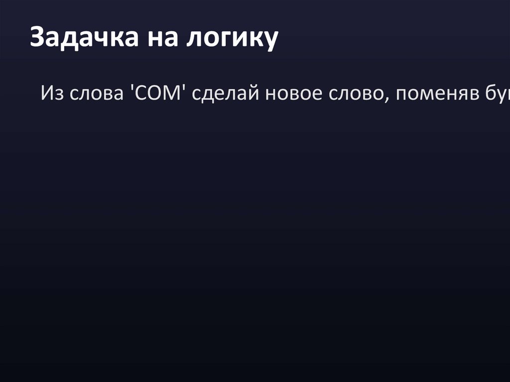 Задачка на логикуИз слова 'СОМ' сделай новое слово, поменяв бук