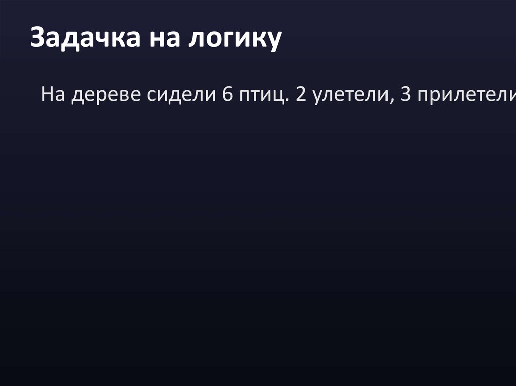 Задачка на логикуНа дереве сидели 6 птиц. 2 улетели, 3 прилетели