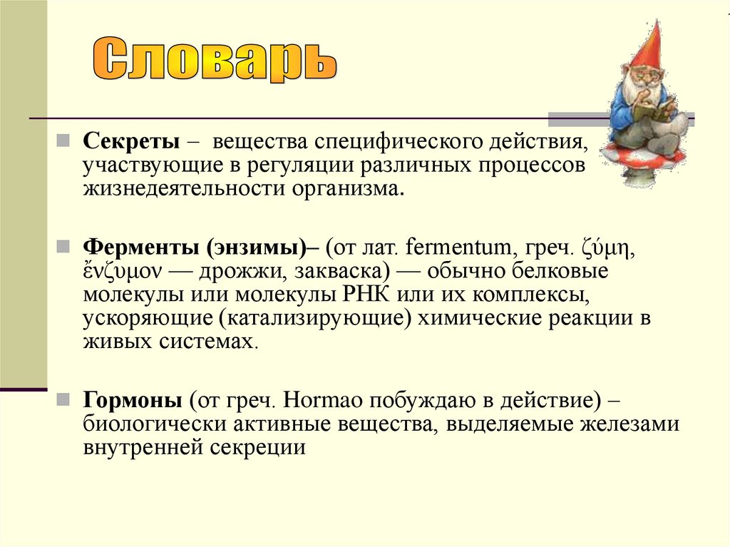Секреты – вещества специфического действия,участвующие в регуляции различных процессов