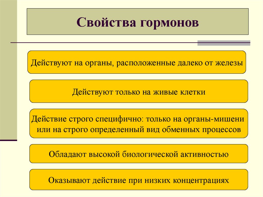 Свойства гормоновДействуют на органы, расположенные далеко от железы