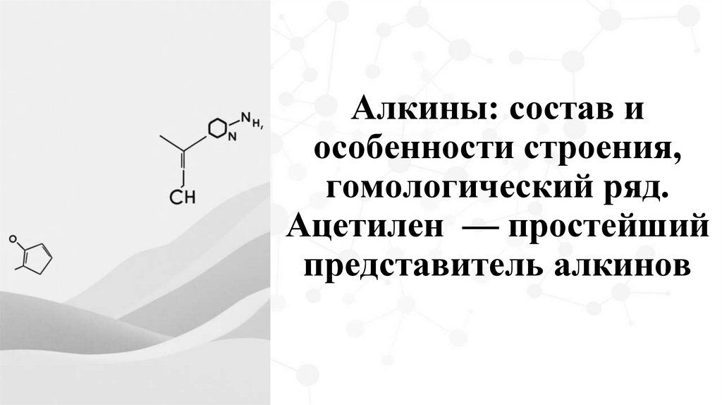 1. Алкины: состав и особенности строения, гомологический ряд. Ацетилен — простейший представитель алкинов